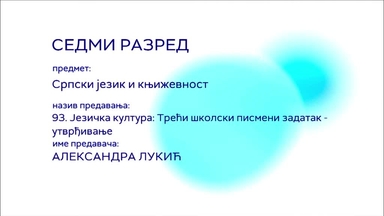 ОШ7 – Српски језик и књижевност, 93. час: Језичка култура: Трећи школски писмени задатак (утврђивање)