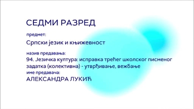 ОШ7 – Српски језик и књижевност, 94. час: Језичка култура: Исправка трећег школског писменог задатка...