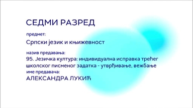 ОШ7 – Српски језик и књижевност, 95. час: Језичка култура: индивидуална исправка трећег школског писменог задатка...