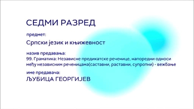 ОШ7 – Српски језик и књижевност, 99. час: Граматика: Независне предикатске реченице, напоредни односи...