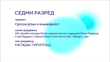 ОШ7 – Српски језик и књижевност, 100. час: Домаћа лектира:Епске народне песме о хајдуцима (Мали Радојица...), обрада 1. део