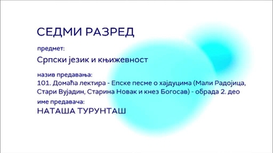 ОШ7 – Српски језик и књижевност, 101. час: Домаћа лектира:Епске народне песме о хајдуцима (Мали Радојица...),обрада 2. део