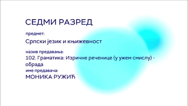 ОШ7 – Српски језик и књижевност, 85. час: Граматика: Појам комуникативне и предикатске реченице... вежбање