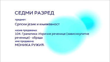 ОШ7 – Српски језик и књижевност, 104. час: Граматика: Изричне реченице (зависноупитне реченице), обрада