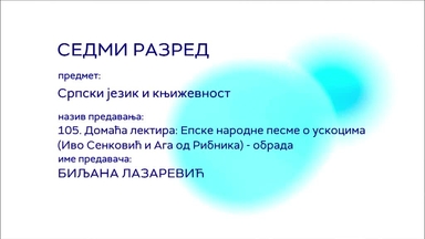 ОШ7 – Српски језик и књижевност, 105. час: Домаћа лектира: Епске народне песме о ускоцима (Иво Сенковић и Ага...), обрада