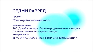 ОШ7 – Српски језик и књижевност, 106. час: Домаћа лектира: Епске народне песме о ускоцима (Ропство Јанковић Стојана)...