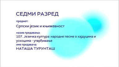 ОШ7 – Српски језик и књижевност, 107. час: Језичка култура: народне песме о хајдуцима и ускоцима (утврђивање)