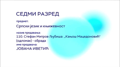 ОШ7 – Српски језик и књижевност, 110. час: Стефан Митров Љубиша: "Кањош Мацедоновић" (одломак), обрада