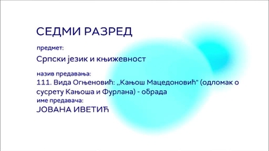 ОШ7 – Српски језик и књижевност, 111. час: Вида Огњеновић: "Кањош Мацедоновић" (одломак о сусрету Кањоша и Фурлана)...