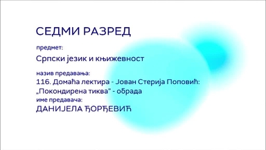ОШ7 – Српски језик и књижевност, 116. час: Домаћа лектира – Јован Стерија Поповић „Покондирена тиква“ (обрада)