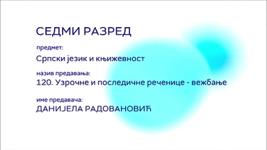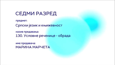 ОШ7 – Српски језик и књижевност, 132. час: Условне и допусне реченице (уз понављање предходно обрађених реченица)...