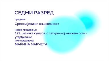 ОШ7 – Српски језик и књижевност, 117. час: Домаћа лектира – Јован Стерија Поповић „Покондирена тиква“ (утврђивање)