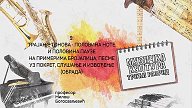ОШ3 – Музичка култура, 9. час: Трајање тонова - половина ноте и половина паузе на примерима бројалица, песме... (обрада)