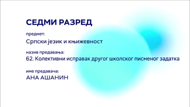 ОШ7 – Српски језик и књижевност, 30. час: Језичка култура: Исправка првог школског писменог задатка - индивидуална