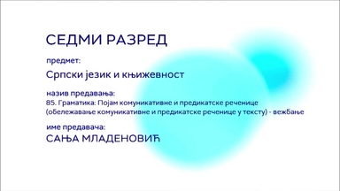 ОШ7 – Српски језик и књижевност, 85. час: Граматика: Појам комуникативне и предикатске реченице... вежбање