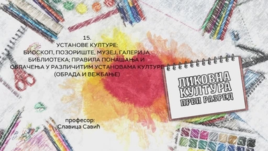 ОШ1 – Ликовна култура, 15. час: Установе културе: биоскоп, позориште, музеј, галерија, библиотека. Правила понашања...