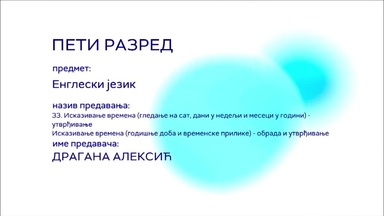 ОШ5 – Енглески језик, 7. час: Описивање догађаја и способности у садашњости и исказивање времена (хронолошког)...