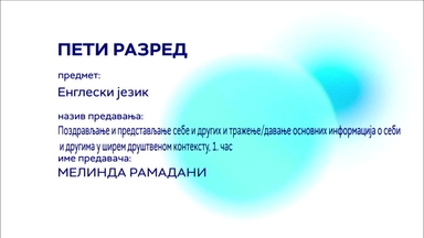 ОШ5 – Енглески језик, 9. час: Представљање, тражење и давање основних информација о себи и другима...