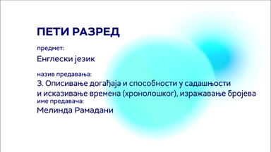 ОШ5 – Енглески језик, 3. час: Описивање догађаја и способности у садашњости и исказивање времена (хронолошког)...