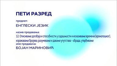 ОШ5 – Енглески језик, 12. час: Описивање догађаја и способности у садашњости и исказивање времена... (обрада, утврђивање)