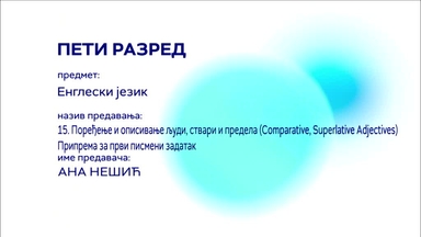 ОШ5 – Енглески језик, 15. час: Поређење и описивање људи, ствари и предела (Comparative, Superlative Adjectives)