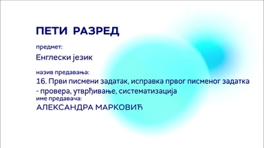 ОШ5 – Енглески језик, 16. час: Први писмени задатак, исправка првог писменог задатка - провера, утврђивање, систематизација