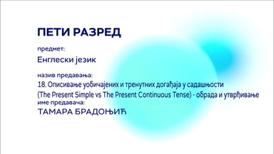 ОШ5 – Енглески језик, 18. час: Описивање уобичајених и тренутних догађаја у садашњости... (обрада и утврђивање)