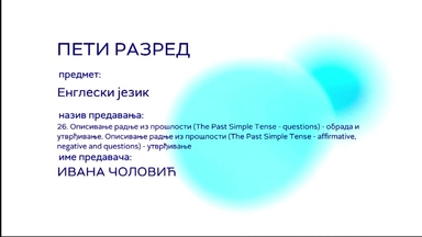 ОШ5 – Енглески језик, 26. час: Описивање радње из прошлости (The Past Simple Tense-questions), обрада и утврђивање...