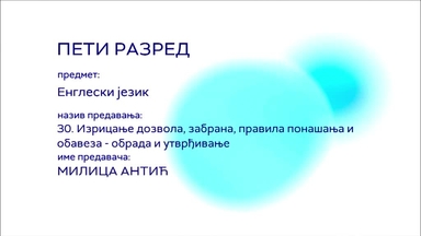 ОШ5 – Енглески језик, 30. час: Изрицање дозвола, забрана, правила понашања и обавеза (обрада и утврђивање)