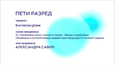 ОШ5 – Енглески језик, 31. час: Изражавање жеља, планова и намера (обрада и утврђивање); Обнављање и систематизација...
