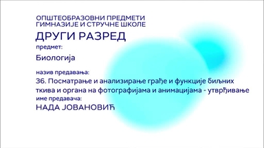 СШ2 – Биологија, 36. час: Посматрање и анализирање грађе и функције биљних ткива и органа на фотографијама и анимацијама...