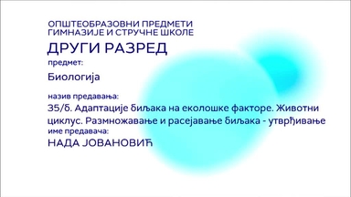 СШ2 – Биологија, 35/б. час: Адаптације биљака на еколошке факторе. Животни циклус. Размножавање и расејавање биљака – утв.