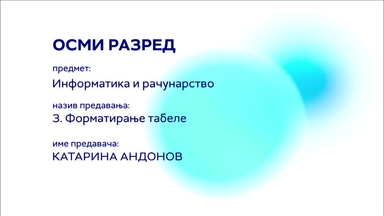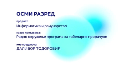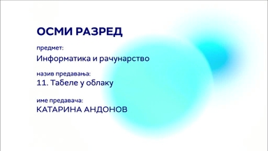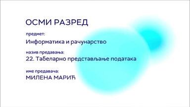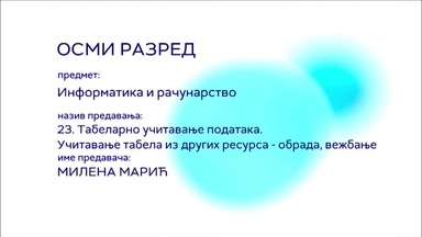 ОШ8 – Информатика и рачунарство, 23. час: Табеларно представљање података. Учитавање табела... (обрада, вежбање)