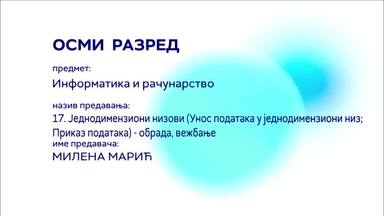 ОШ8 – Информатика и рачунарство, 17. час: Једнодимензиони низови (Унос података у једнодимензиони низ...), обрада, вежбање
