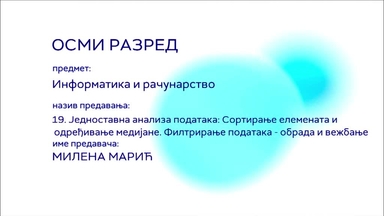 Тренутно ОШ8 – Информатика и рачунарство, 19. час: Једноставна анализа података: Сортирање елемената и одређивање медијане...