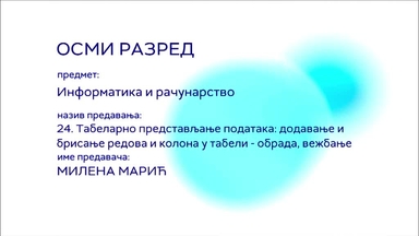 ОШ8 – Информатика и рачунарство, 24. час: Табеларно представљање података: додавање и брисање редова и колона...