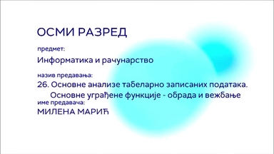 ОШ8 – Информатика и рачунарство, 26. час: Основне анализе табеларно записаних података... (обрада и вежбање)