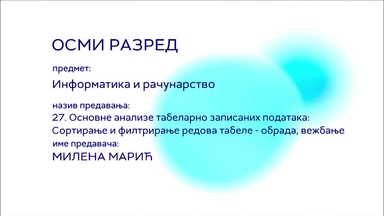 ОШ8 – Информатика и рачунарство, 27. час: Основне анализе табеларно записаних података: Сортирање и филтрирање...