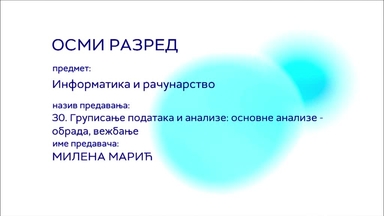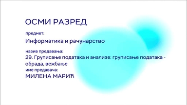 ОШ8 – Информатика и рачунарство, 29. час: Груписање података и анализе: Груписање података (обрада, вежбање)