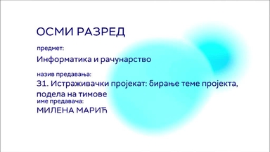ОШ8 – Информатика и рачунарство, 31. час: Истраживачки пројекат: бирање теме пројекта, подела на тимове