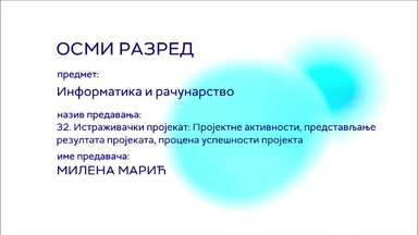 ОШ8 – Информатика и рачунарство, 32. час: Истраживачки пројекат: Пројектне активности, представљање резултата пројеката...