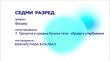 ОШ7 – Физика, 6. час: Равномерно променљиво праволинијско кретање, интезитет, правац и смер брзине... (обрада и утврђивање)