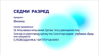 ОШ7 – Физика, 16. час: Хитац навише и хитац наниже. Кретање тела у гравитационом пољу... (утврђивање и обрада)