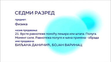 ОШ7 – Физика, 21. час: Врсте равнотеже помоћу лењира или штапа. Полуга. Момент силе. Равнотежа полуге... (обрада)