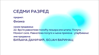 ОШ7 – Физика, 22. час: Врсте равнотеже помићу лењира или штапа. Полуга. Момент силе. Равнотежа полуге... (утврђивање)