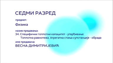ОШ7 – Физика, 34. час: Специфични топлотни капацитет, утврђивање. Топлотна равнотежа. Агрегатна стања супстанције, обрада