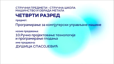 СШ4 – Програмирање за компјутерски управљане машине, 10. час: Ручно пројектовање технологије и програмирање глодања