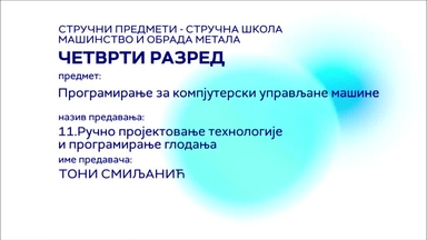 СШ4 – Програмирање за компјутерски управљане машине, 11. час: Ручно пројектовање технологије и програмирање глодања
