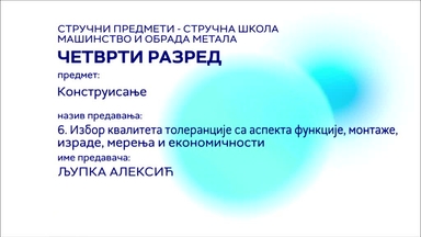 СШ4 – Конструисање, 6. час: Избор квалитета толеранције са аспекта функције, монтаже, израде, мерења и економичности