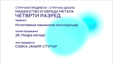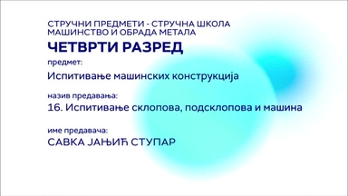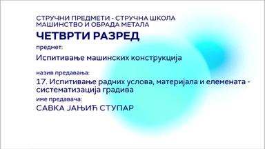 СШ4 – Испитивање машинских конструкција, 17. час: Испитивање радних услова,материјала и елемената-систематизација градива